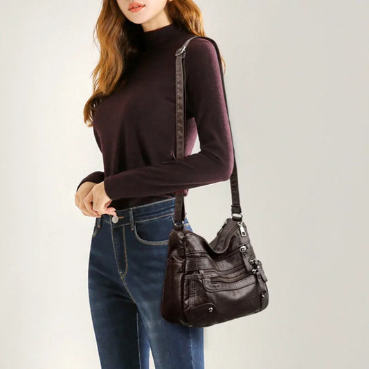 Women's Shoulder Crossbody Bag with Multilayered Soft Leather