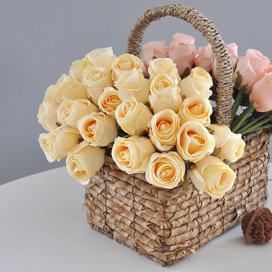 12PCS Light Yellow Artificial Rose Flowers Bouquet | Silk Floral