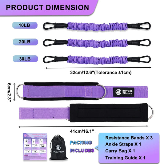 Leg & Glute Ankle Resistance Bands with Cuffs - 60LB Set of 3