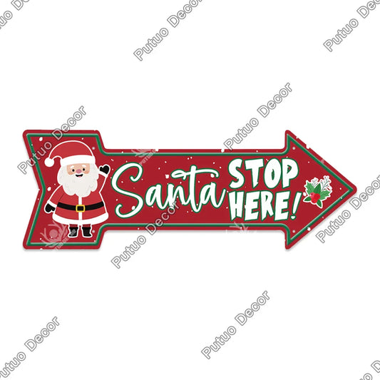 Putuo Decor Happy Christmas Vintage Metal Tin Arrow Sign - 7.8 x 11.8 In