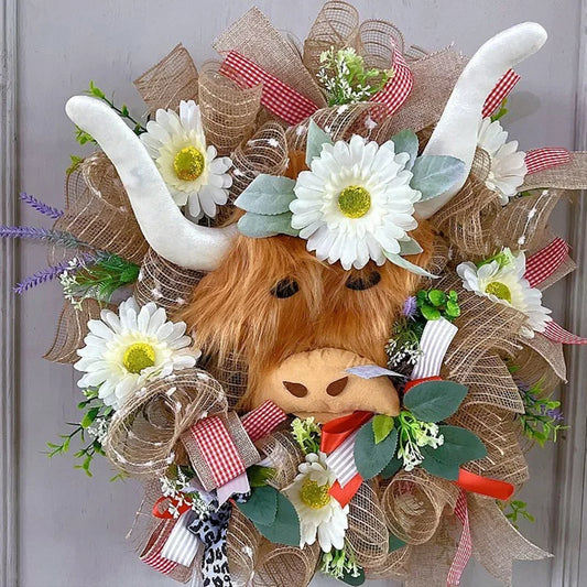 Highland Cow Christmas Wreath Front Door Decoration