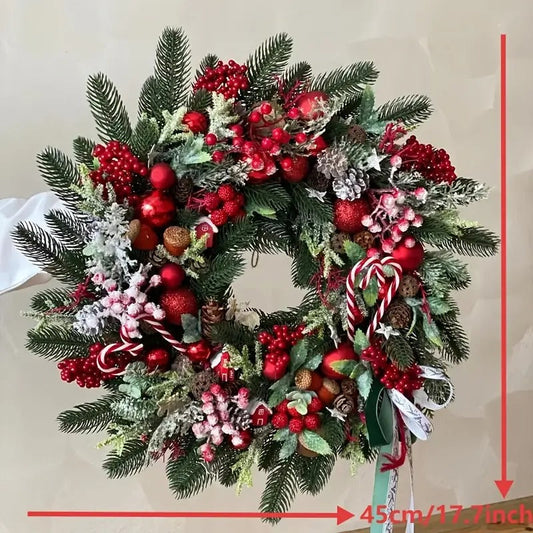 Christmas Wreath with Red Berries, Pine Cones & Candy Accents