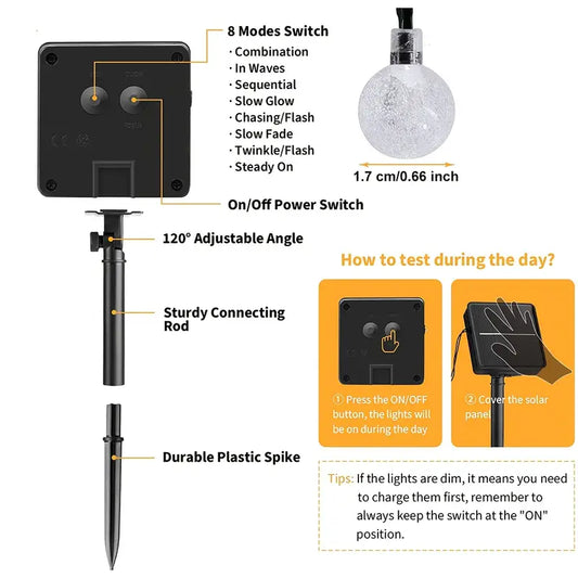 Solar Crystal Globe String Lights - 1 Pack, 100 LED, IP65 Waterproof, 8 Lighting ModesRegular price $114.99 AUDRegular priceUnit price / per$225.88 AUDSale price $114.99 AUDSale