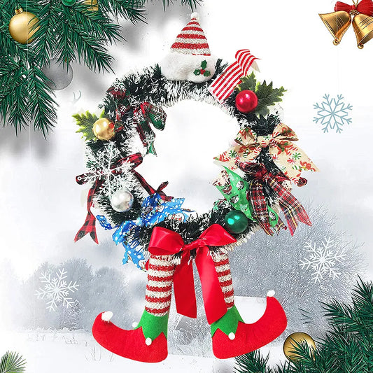 Christmas Long Legged Hanging Garland Wreath with Bowknot