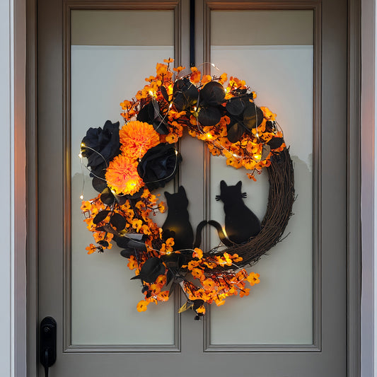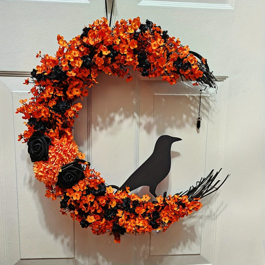Halloween Moon Black Wreath Skull Bones Bats Roses