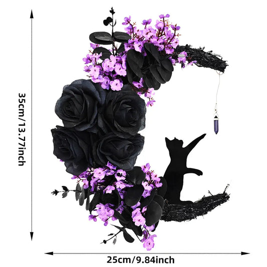 Halloween Black Bat Branch Wreath with Red LED Lights