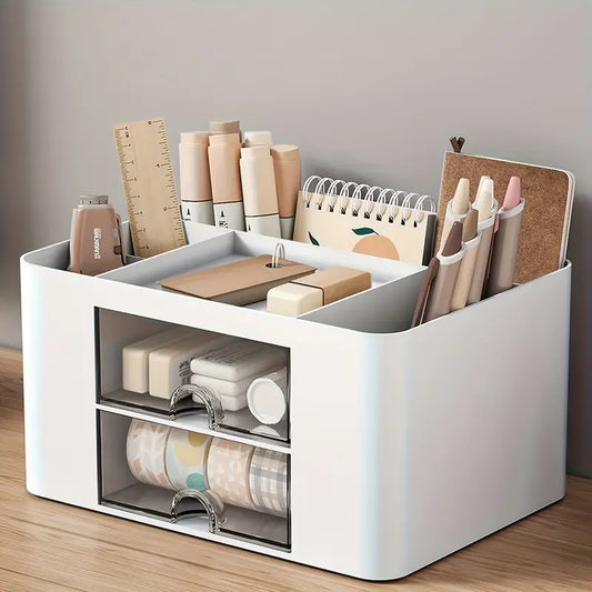 White Pen Organizer with 2 Drawers - Multi-Functional Desk and Office Supplies Holder- WhiteRegular price $90.99 AUDRegular priceUnit price / per$181.06 AUDSale price $90.99 AUDSale