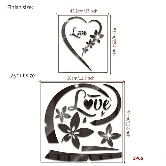 Romantic Love Heart Mirror Wall Sticker Set - Self-Adhesive Removable Acrylic(Red)