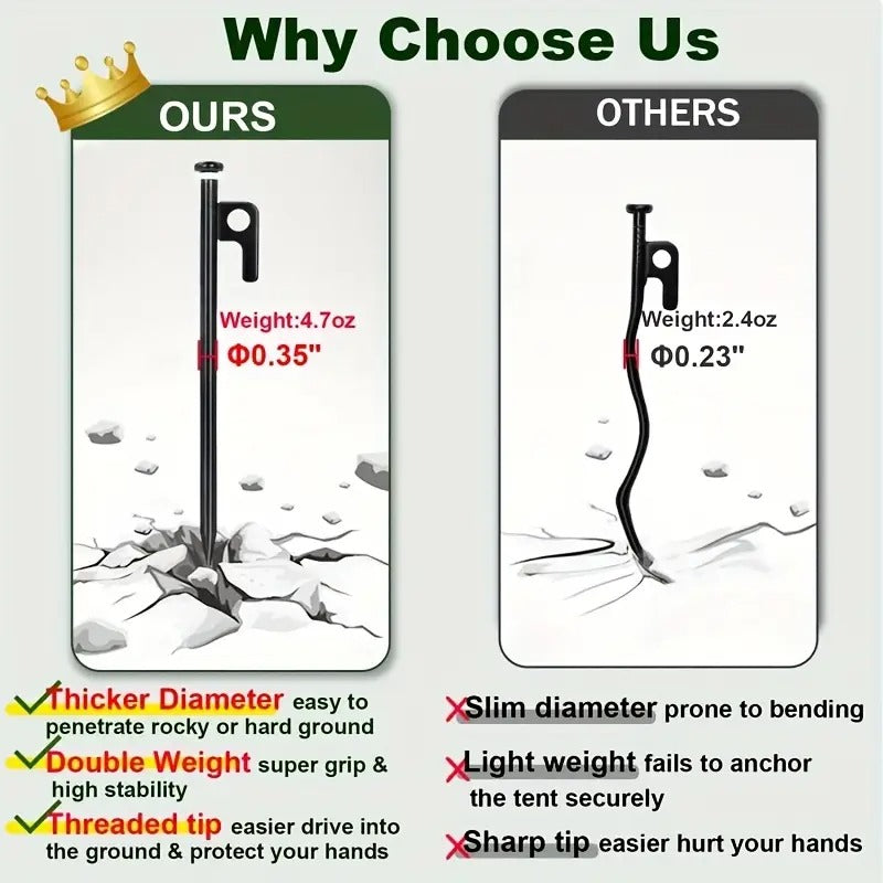 The  Camping Hammer with 12 Tent Pegs Kit is designed for campers who need a reliable tool for securing tents. The hammer pairs with twelve 30 cm stainless steel ground nails, offering stability and strength for your outdoor setup. This kit is portable and easy to carry, making it an essential part of your camping gear. Dimensions are provided, refer to the image for accurate sizing.