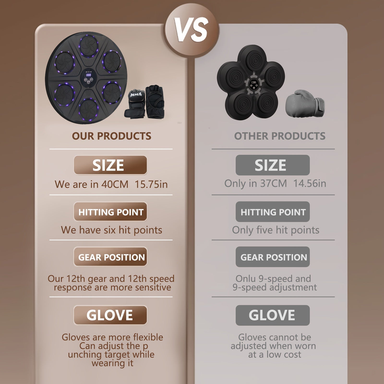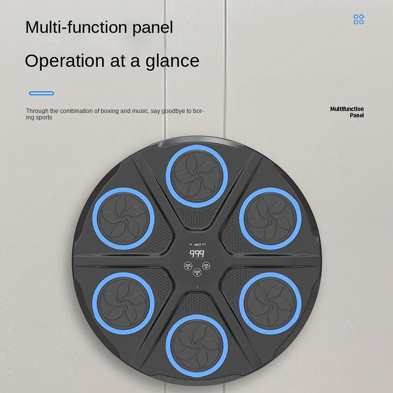 The  Smart Music Boxing Wall Trainer with Gloves is designed for dynamic home and gym workouts. With wireless and app control, this boxing trainer allows you to customize speed levels and train to music for an immersive fitness session. Its compact 40.5 cm x 40.5 cm wall-mounted design fits neatly in any space.