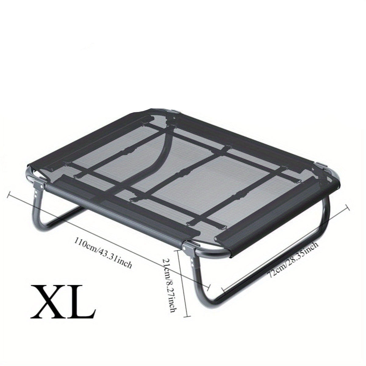 The  Elevated Dog & Cat Bed is designed to give your pets a cooler, drier, and more comfortable resting experience year-round. With its raised platform and breathable fabric, it keeps pets off the ground to avoid moisture and heat. Whether for indoor lounging or outdoor naps, this pet cot combines comfort and durability with a washable design that makes cleaning effortless. Refer to the image for product dimensions and assembly setup.