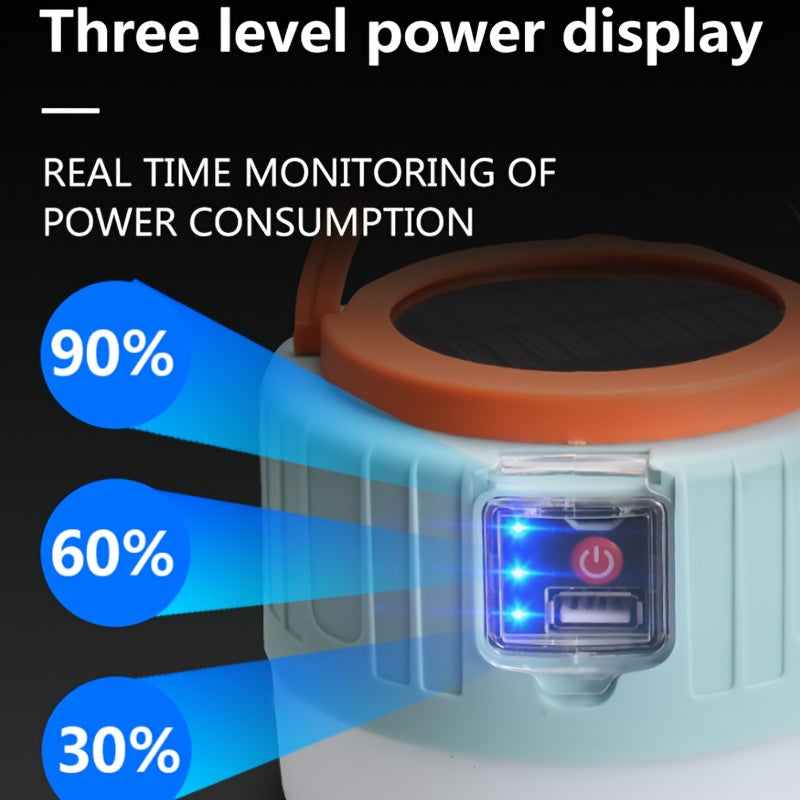 The LED Solar Camping Lantern delivers dependable brightness and versatility for all your outdoor activities. Whether you're camping, hiking, fishing, or preparing for emergencies, this rechargeable lantern offers four adjustable lighting modes to match every situation. Designed with a high-efficiency lithium solar battery and USB charging support, it ensures continuous illumination wherever you are. Compact and lightweight, it’s easy to carry and store.