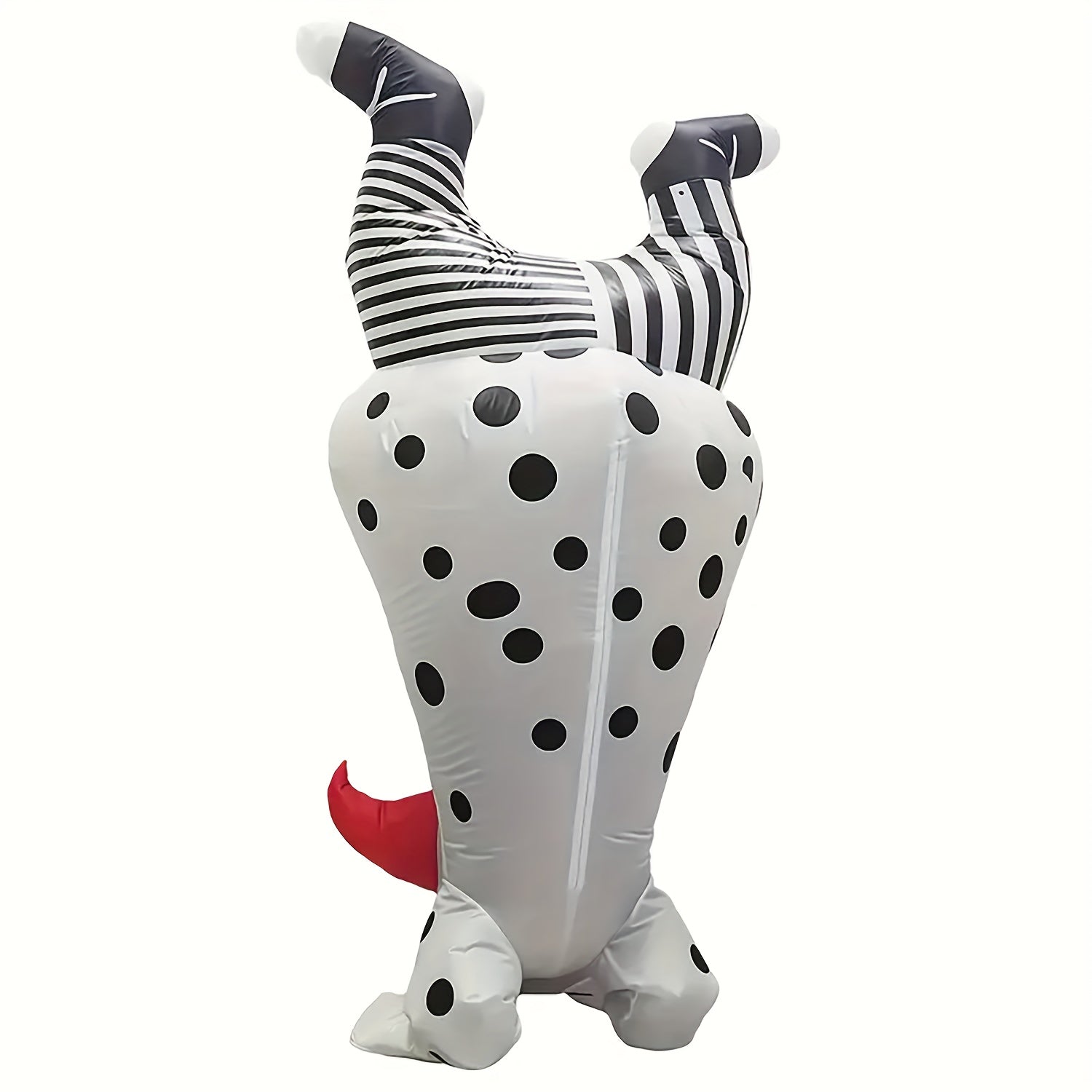 The Inflatable Clown Skeleton Costume delivers a fun and entertaining look for Halloween or themed events. Designed for adults, it features a black and white striped outfit with playful polka dots and an easy zipper closure for convenience. Powered by batteries for quick inflation, this costume ensures a hassle-free setup and lasting comfort throughout the event.