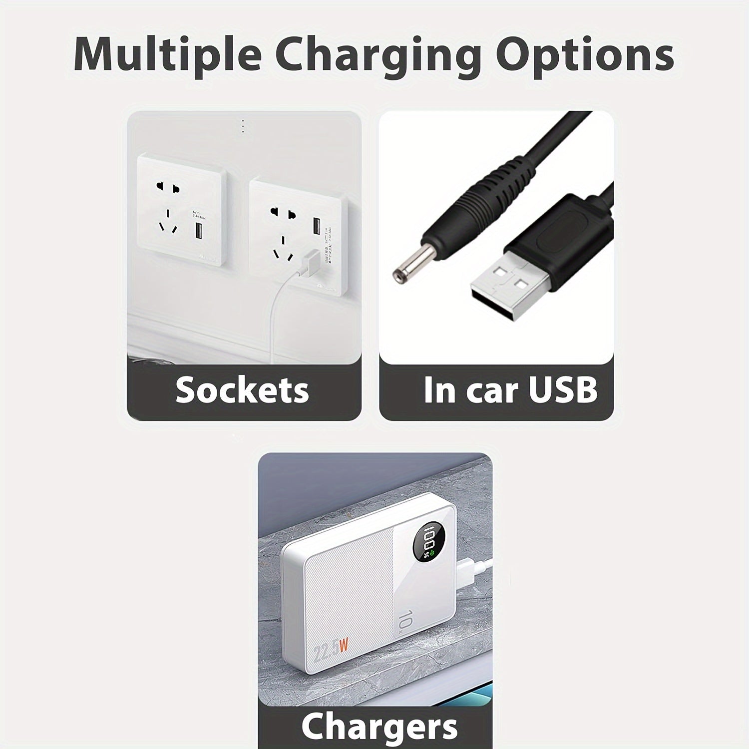 Compatible with USB power banks and car ports