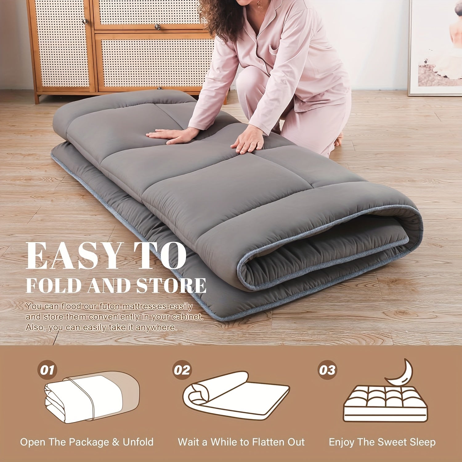 The Japanese Tatami Floor Futon Mattress offers a luxurious sleeping and lounging solution in a portable, space-saving design. Crafted with soft and breathable 100% polyester, this grey futon mattress features high-quality quilting and 5D polyester filling to provide comfort and support. Its roll-up structure makes it perfect for small apartments, guest rooms, or on-the-go camping trips.