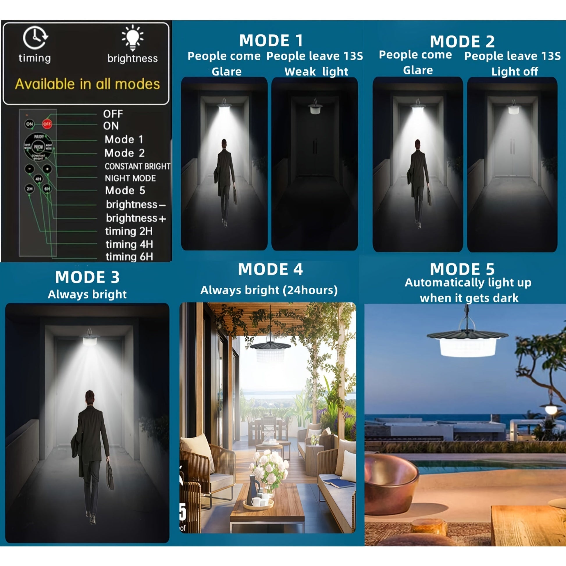 Portable 244 LED solar pendant light with remote control, ideal for indoor and outdoor use.