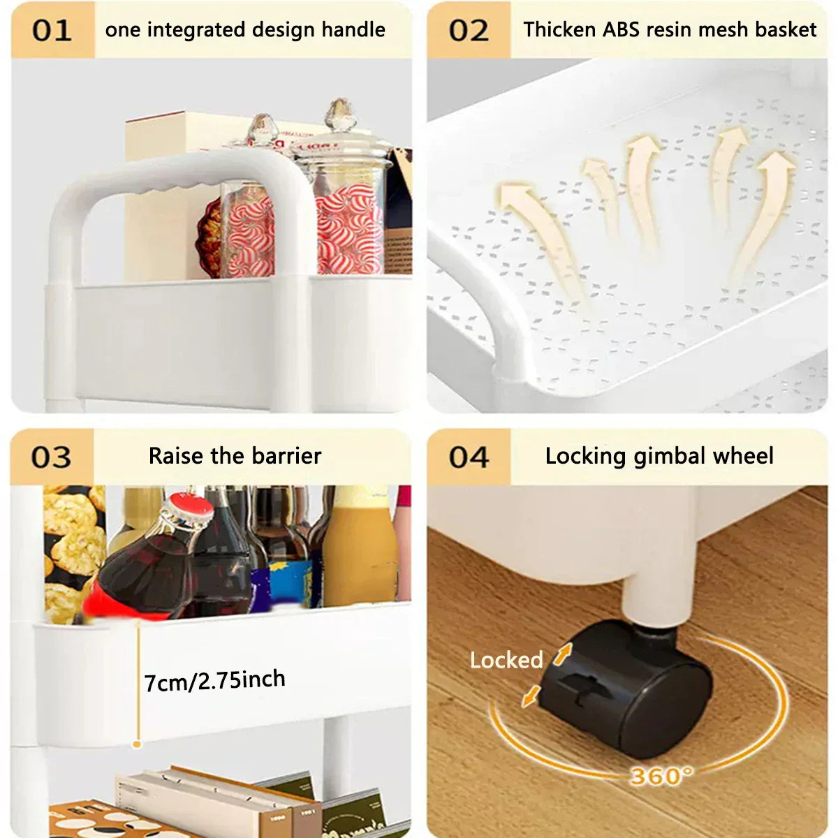 - Multi-Storey Storage: Maximize your storage capacity with multiple layers, providing ample space for snacks, bathroom essentials, bedside items, or any items you need within arm's reach.