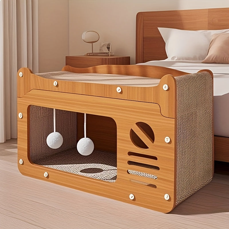 The  2-in-1 Wall Cat Bed and Scratching Post is crafted for both rest and play, making it a smart choice for indoor cats. Its space-saving wall-mounted design includes a scratchable surface and ventilation slots to keep your pet cool during warmer months. Built with durable cardboard, it offers a cozy elevated bed and an outlet for natural scratching behavior.