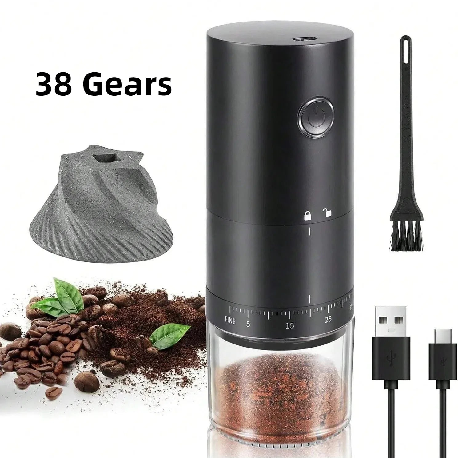 38-Setting Precision Grinding: Adjust the grind size externally to suit espresso, pour-over, French press, and more.
