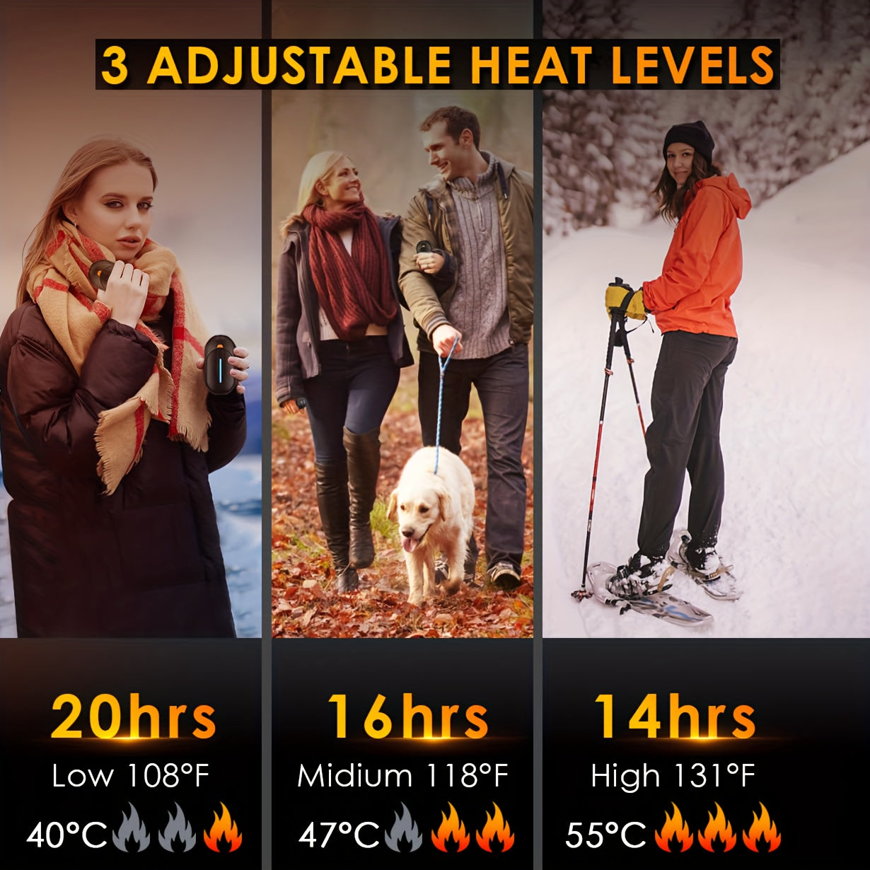 The  Rechargeable Electric Hand Warmers 2PCS deliver up to 20 hours of reliable heat, making them a must-have for anyone braving cold weather. Each unit features a sleek, pocket-sized design and powerful lithium polymer batteries that recharge quickly via USB. Whether you're skiing, hunting, golfing, or simply walking outdoors, these cordless hand warmers offer instant comfort wherever you go.