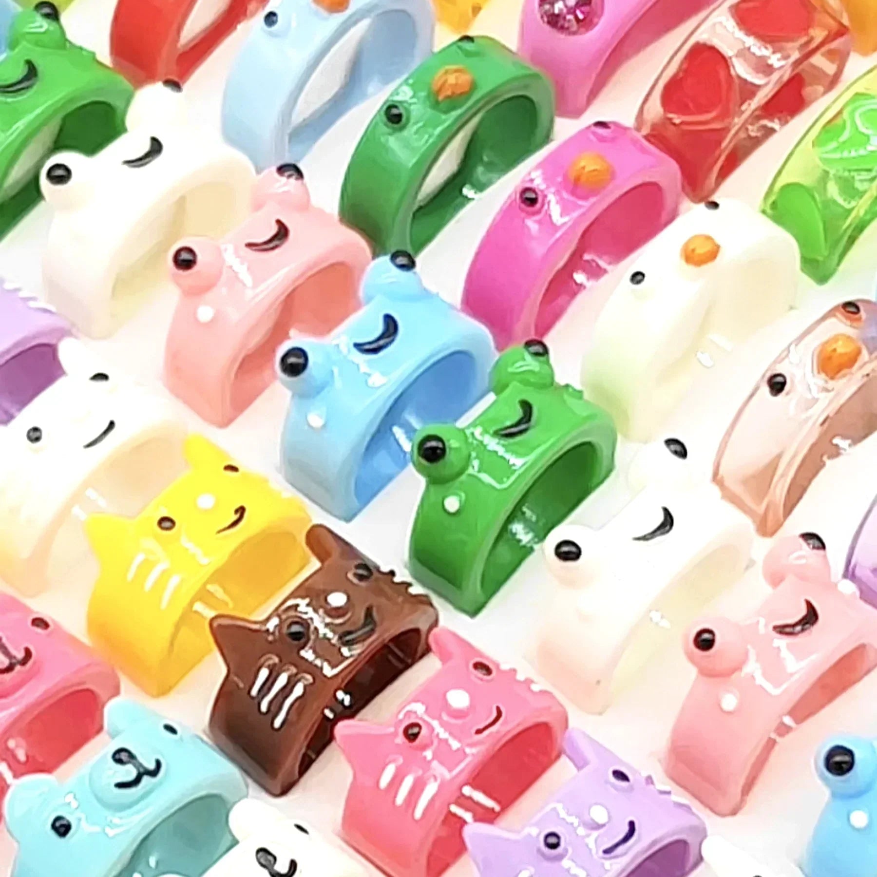Variety in Every Set: Each lot includes 20 rings featuring an assortment of adorable animal cartoon designs. From sweet smiley cats to charming frogs, there's a ring for every mood and style.