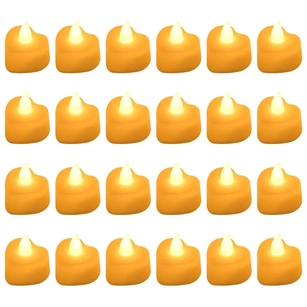 Add a touch of romance to any occasion with the NNEOBA 24-Pack Heart LED Tea Lights with Artificial Rose Petals. This set includes 24 heart-shaped LED candles that emit a soft, warm light, perfect for creating a romantic ambiance at weddings, anniversaries, or special dates. These flameless candles are a safe and convenient alternative to traditional candles, with pre-installed batteries for quick use.