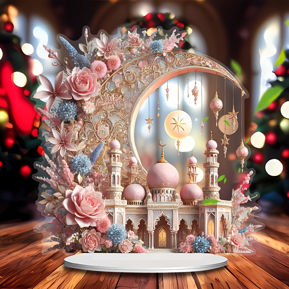 2D Ramadan Crescent Moon & Mosque Acrylic Decor