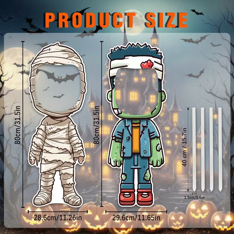 The Halloween Yard Sign 2pcs Outdoor Lawn Decoration is designed to create an eye-catching Halloween display in your garden, road, or yard. Each piece features a hollow photo prop design, making it perfect for parties and fun outdoor photos. Made from sturdy plastic with a pole mount setup, it’s easy to install and reuse for future celebrations.