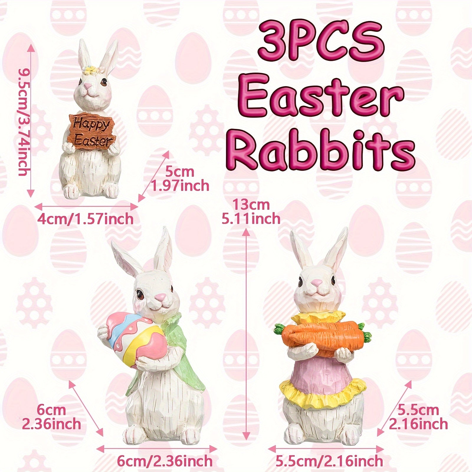 3pcs Vintage Easter Rabbit Resin Ornaments Decor