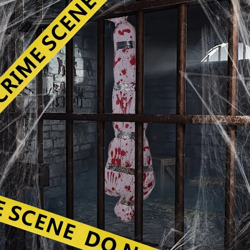 This 3-piece hanging dummy set is designed for Halloween parties, haunted houses, or escape room props. Each dummy measures 150cm in height and 40cm wide, making them ideal for creating a realistic horror effect. Durable materials allow repeated use and quick setup. For accurate sizing, refer to the image for dimension details.