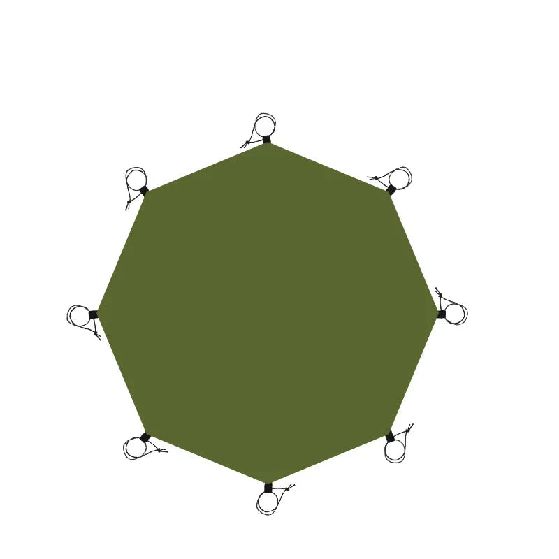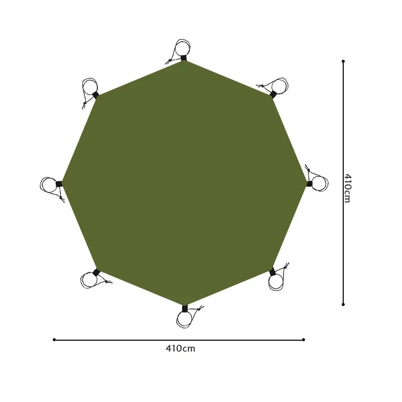 Description: The NNEOBA 4.1x4.1m Waterproof Camping Mat is designed for outdoor enthusiasts. Made with durable 210D Oxford fabric and PU coating, this mat provides reliable waterproofing with a 5000mm index. Ideal for camping, beach trips, and picnics, it offers ample coverage and protection from wet ground. The mat comes in two versions—hexagonal and octagonal—each with aluminum pegs and a handy storage bag for easy transport. Stay dry and comfortable wherever your adventures take you!
