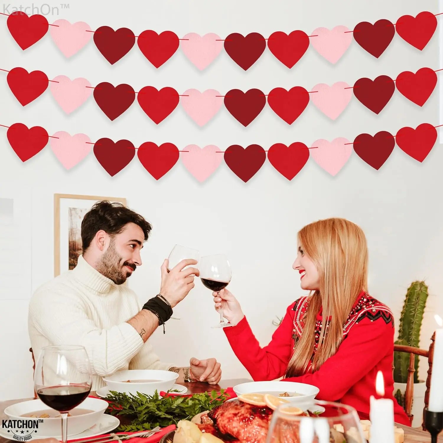 Each garland comprises four beautifully crafted felt hearts in varying hues, exuding warmth and affection. The banners are thoughtfully strung together, eliminating the need for assembly and allowing you to immediately elevate the ambiance for Valentine's Day celebrations.