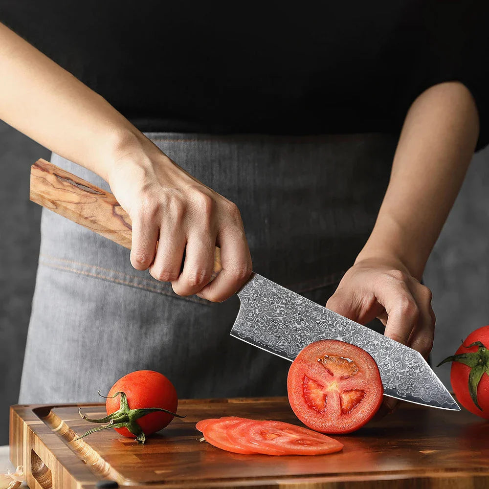 The knife features a solid olivewood handle that's as beautiful as it is comfortable, providing a warm, natural grip for steady control. With a cutting force rating of 6.0–8.0N, it meets international sharpness standards while offering superior rust resistance and a polished finish. Whether you're slicing delicately or chopping confidently, this chef knife brings elegance and power to your kitchen routine.