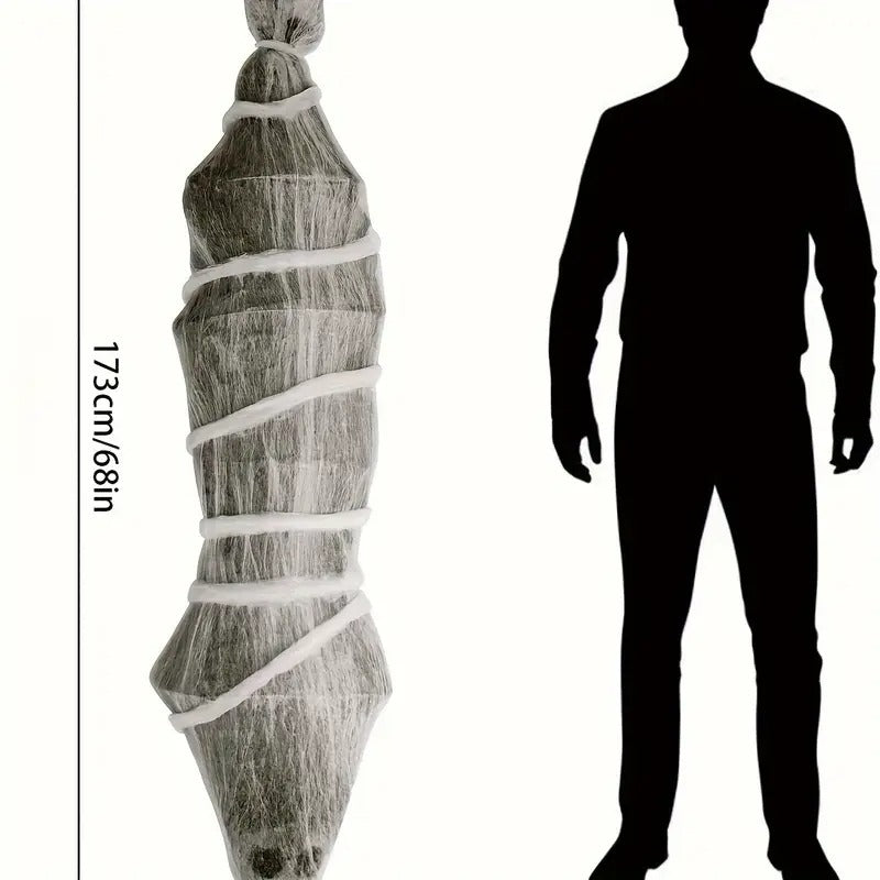 Spooky 173cm hanging cocoon prop for Halloween displays.