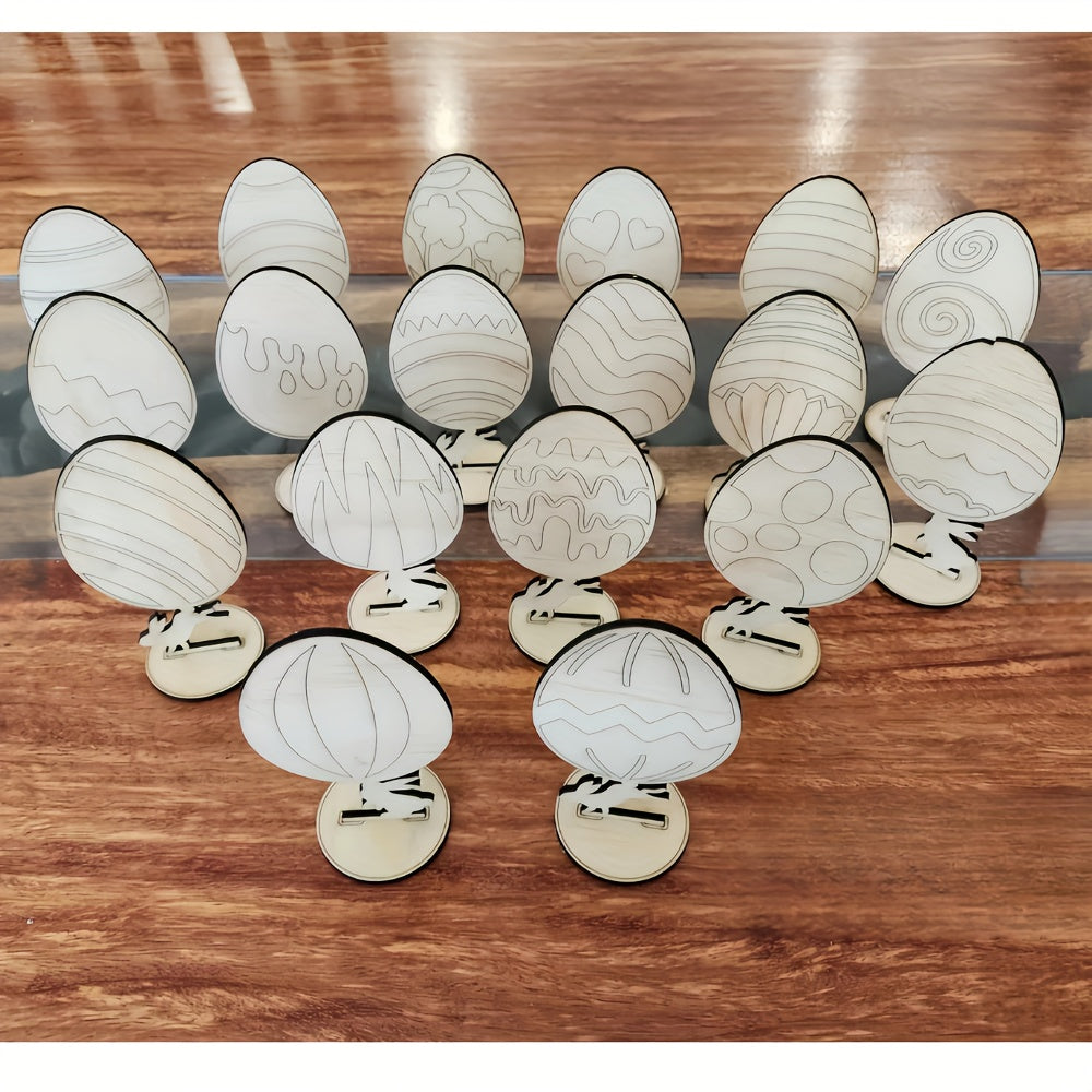 Create festive Easter decorations with this 18-piece DIY wooden egg painting kit, perfect for parties and holiday fun.