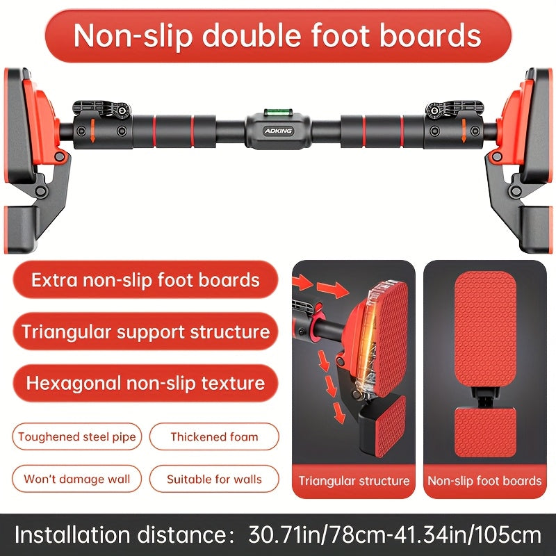 The  Adjustable Doorway Pull-Up Bar is the ultimate compact solution for upper body training at home. Built with a durable steel frame, it can be installed between 78 to 105 cm wide door frames without any perforation or wall damage. Whether you're doing pull-ups, chin-ups, or hanging leg raises, this bar supports your daily strength training routine in comfort and safety.