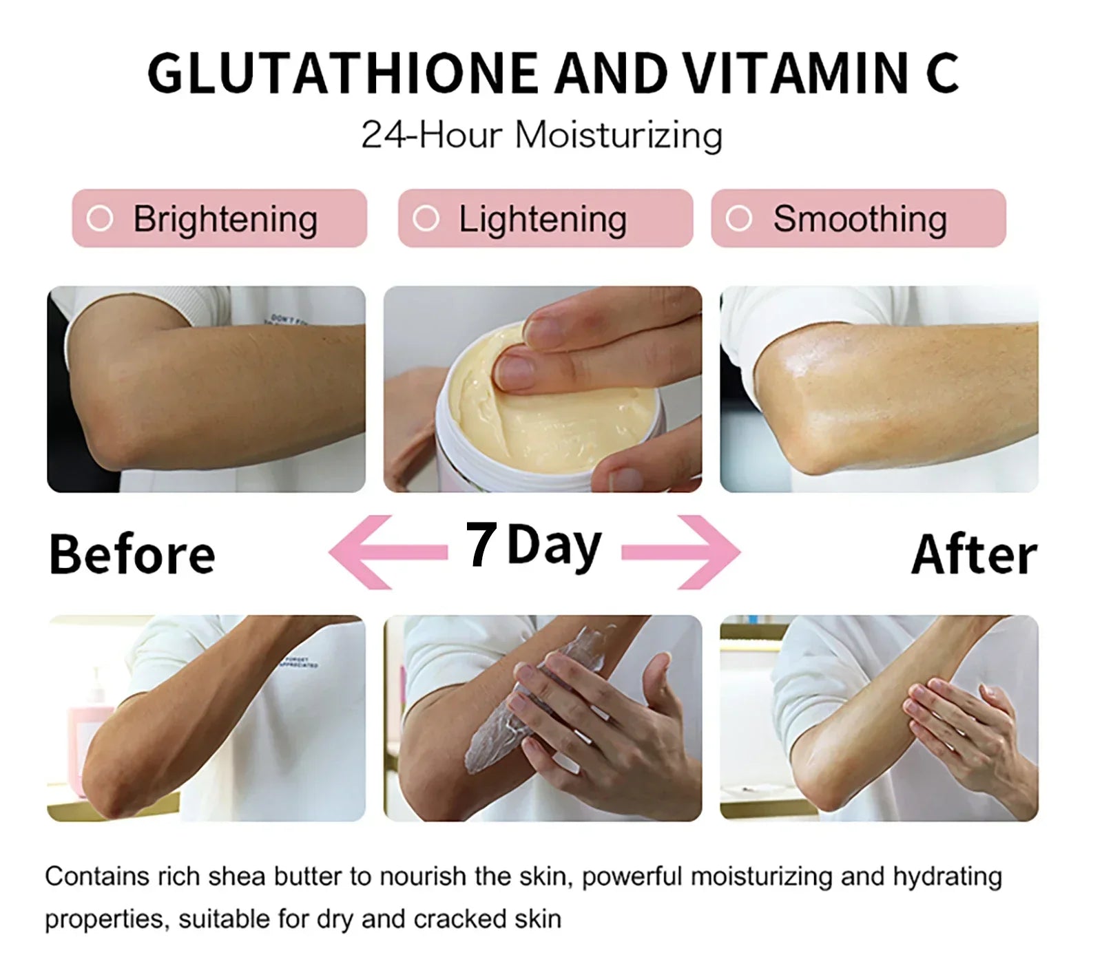 - Whitening Power: Enriched with glutathione and vitamin C, this body set effectively whitens and brightens the skin, promoting a luminous complexion.