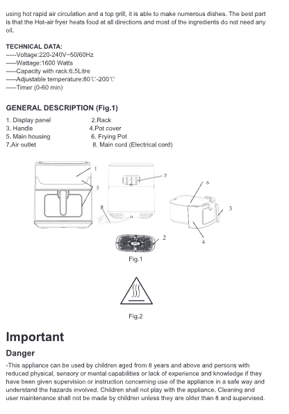 Description: Prepare healthy, oil-free meals with ease using the NNETM 6.5L Air Fryer. This versatile appliance features 8-in-1 cooking functions that allow you to fry, bake, grill, and roast a wide variety of dishes, all with minimal oil. The non-stick frying pot ensures quick cleaning, while the large capacity is perfect for family-sized portions. The LCD digital touch screen makes it simple to adjust temperature (80-200°C) and cooking time, ensuring perfect results every time. Ideal for quick, nutritious meals, this air fryer is a must-have for every kitchen.