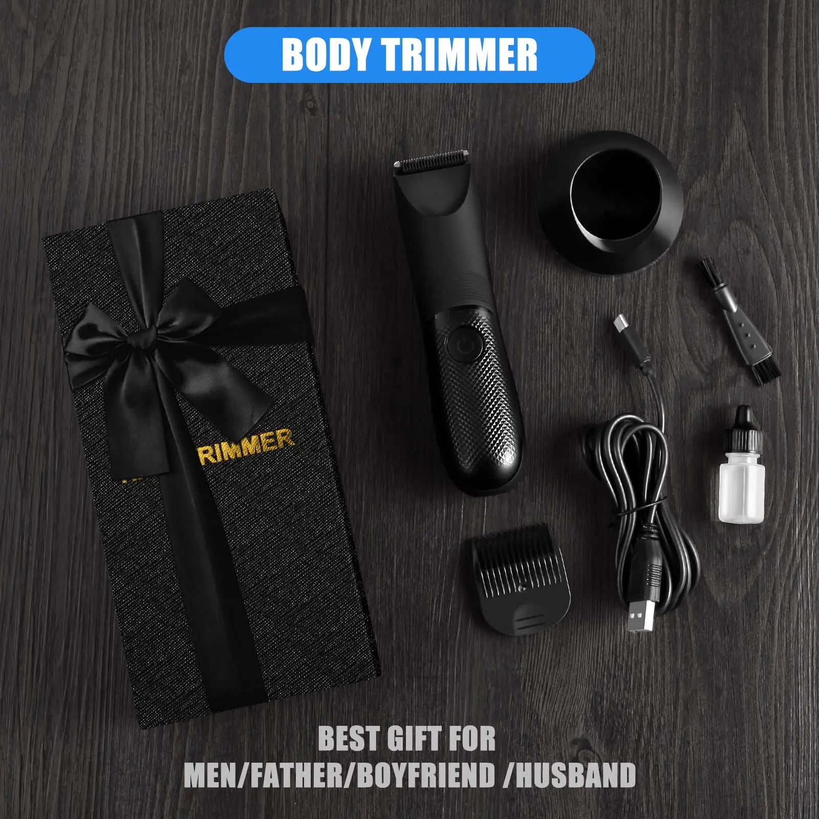 Rechargeable Body Hair Trimmer for Men Ceramic Blade & LED Light Black