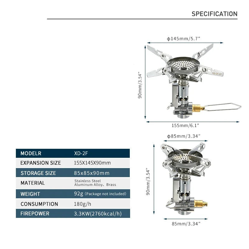 Designed for campers, hikers, and outdoor enthusiasts, this stove features an adjustable flame control for efficient cooking, whether you’re boiling water, preparing a quick meal, or warming food on the go. With a stable base that supports various pot sizes and quick setup with standard gas canisters, this mini stove is the perfect blend of convenience and performance for outdoor adventures.