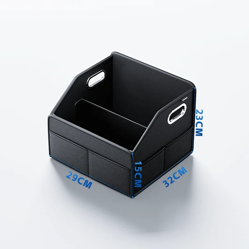 Tired of a messy car trunk? Our PU Leather Car Trunk Organizer is the ultimate storage solution for keeping your vehicle neat and organized. With a collapsible, space-saving design, this organizer easily folds flat when not in use and can be partially folded for front-seat use—perfect for business travelers or solo drivers. Featuring a large main compartment, two side pockets, and two mesh pockets, it offers plenty of space for groceries, tools, toys, emergency kits, and more.
