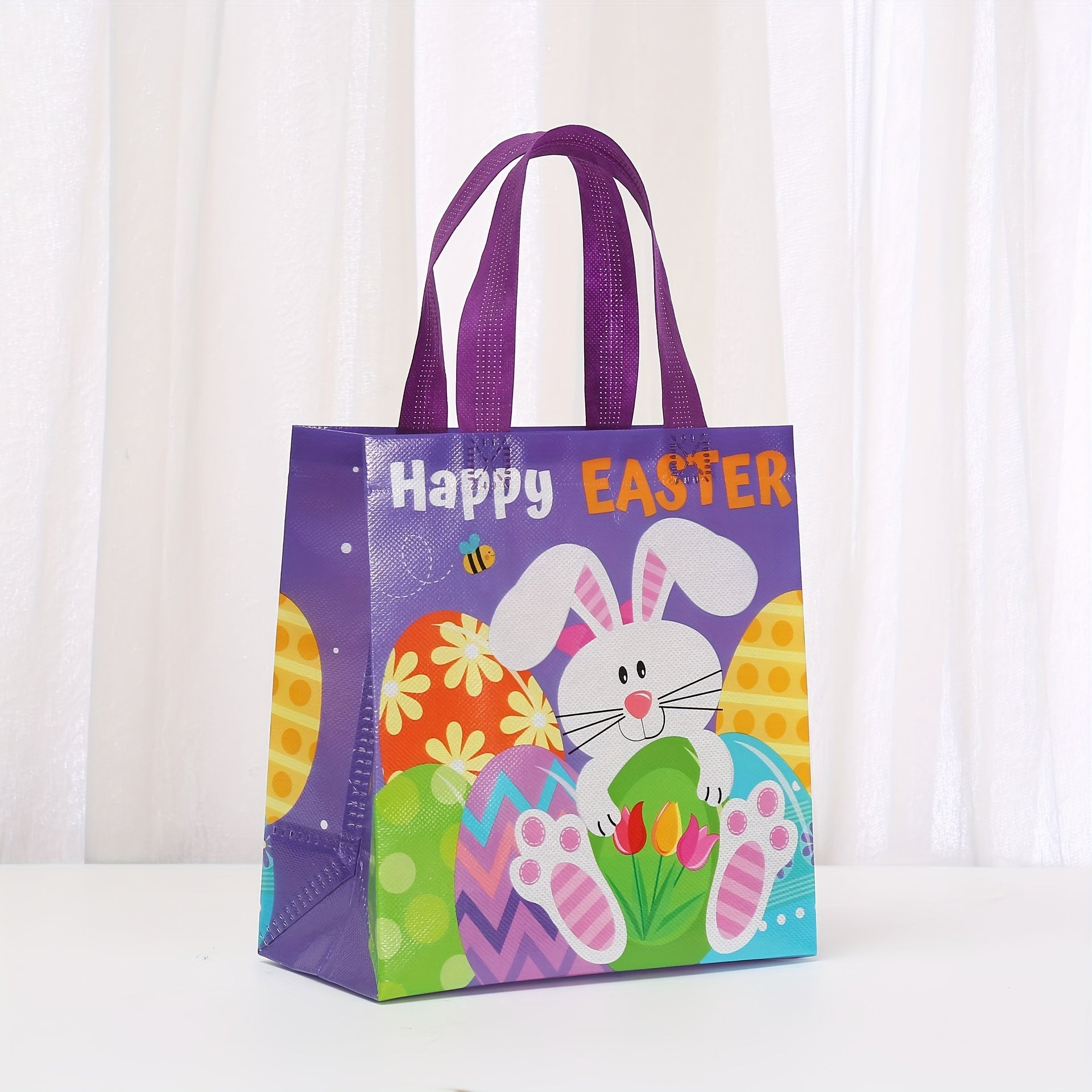 Foldable non-woven rabbit egg print tote bags, perfect for Easter celebrations and gifting.