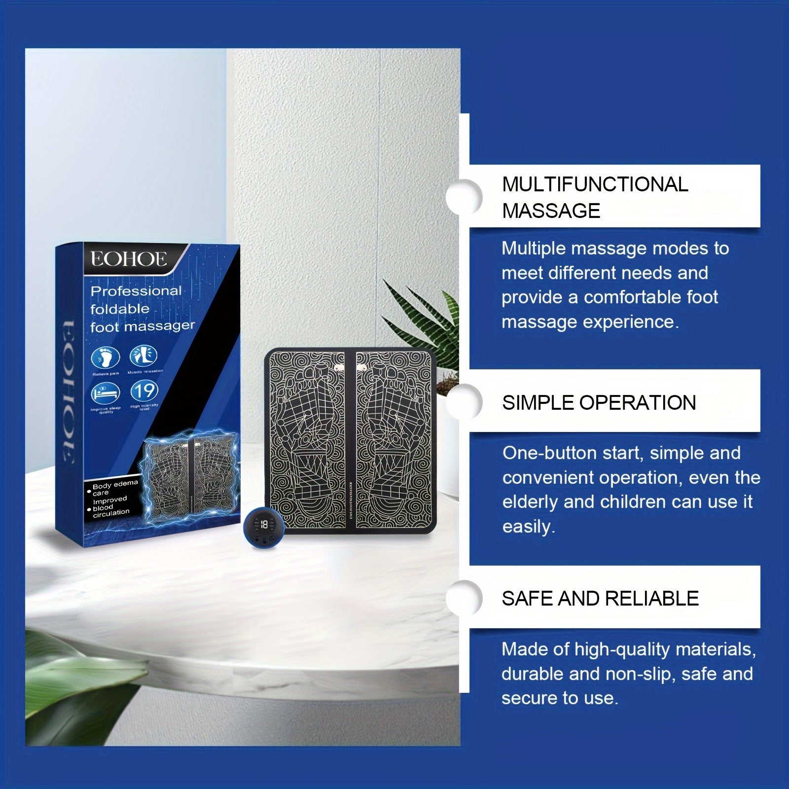 Foldable Foot Massager with 8 Vibration Modes – EMS Acupressure Therapy(Blue)