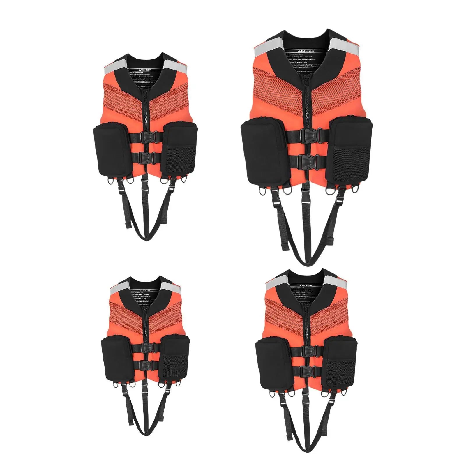 Description: The NNEOBA Fishing Life Jacket is the perfect choice for anglers and water sports enthusiasts who demand both comfort and safety. Designed with high buoyancy, this vest ensures you stay afloat and secure during your fishing trips or other water adventures. It features large, reflective pockets for storing your fishing tools and essentials, while adjustable straps and a front zipper make it easy to put on and take off. Crafted from premium nylon, the life jacket is lightweight, breathable, and designed for maximum comfort. Whether you're fishing, swimming, jet skiing, surfing, or sailing, this versatile life vest has you covered.