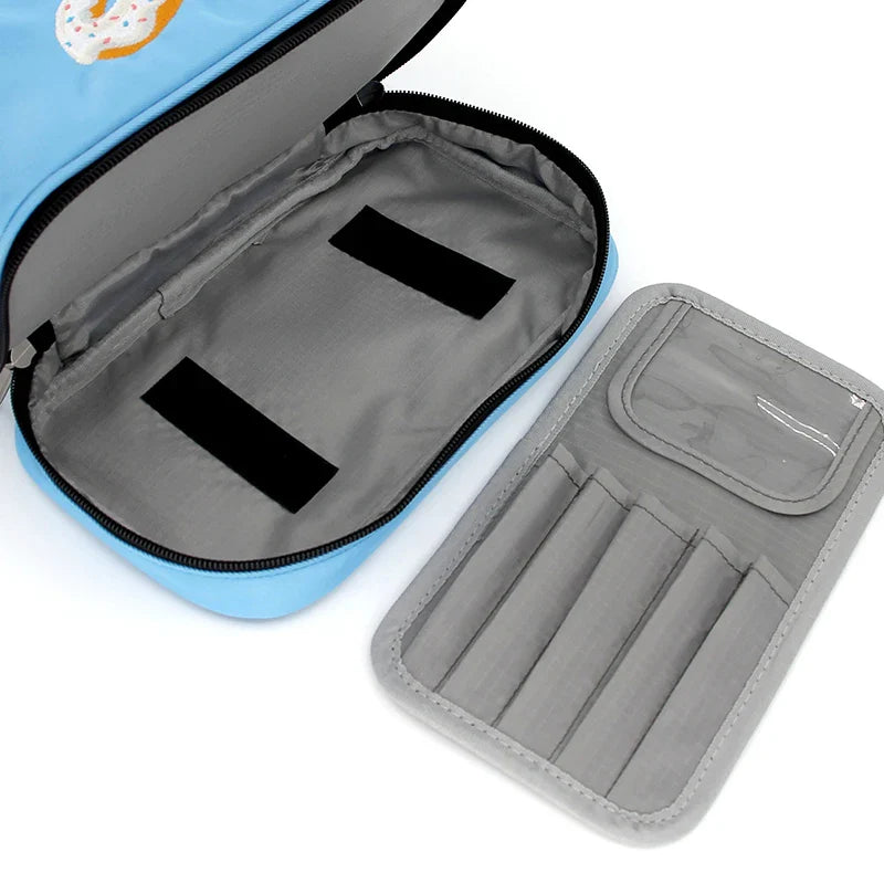 The NNEOBA Sweet Time Travel Makeup Bag is inspired by the delightful blend of fashion and sweets. It reflects the carefree, childlike joy and high-quality lifestyle that sweets represent. This bag's vibrant, dessert-themed colors and playful patterns make it as appealing and irresistible as your favorite treat.