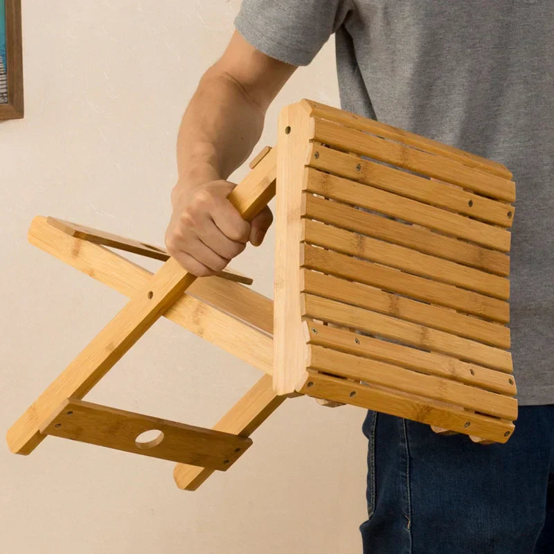Introducing the Folding Chair Collapsible Bamboo Stool, featuring: