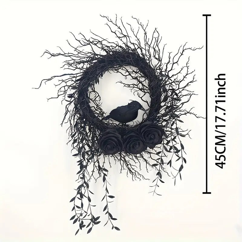 The Halloween Wreath 45cm Black Crow & Dark Blue Roses is perfect for creating a spooky seasonal vibe at your entrance. Featuring a black crow and dark blue roses, this wreath adds a dramatic touch to your door or wall. Its simple design allows you to hang it easily and reuse it for multiple Halloweens.