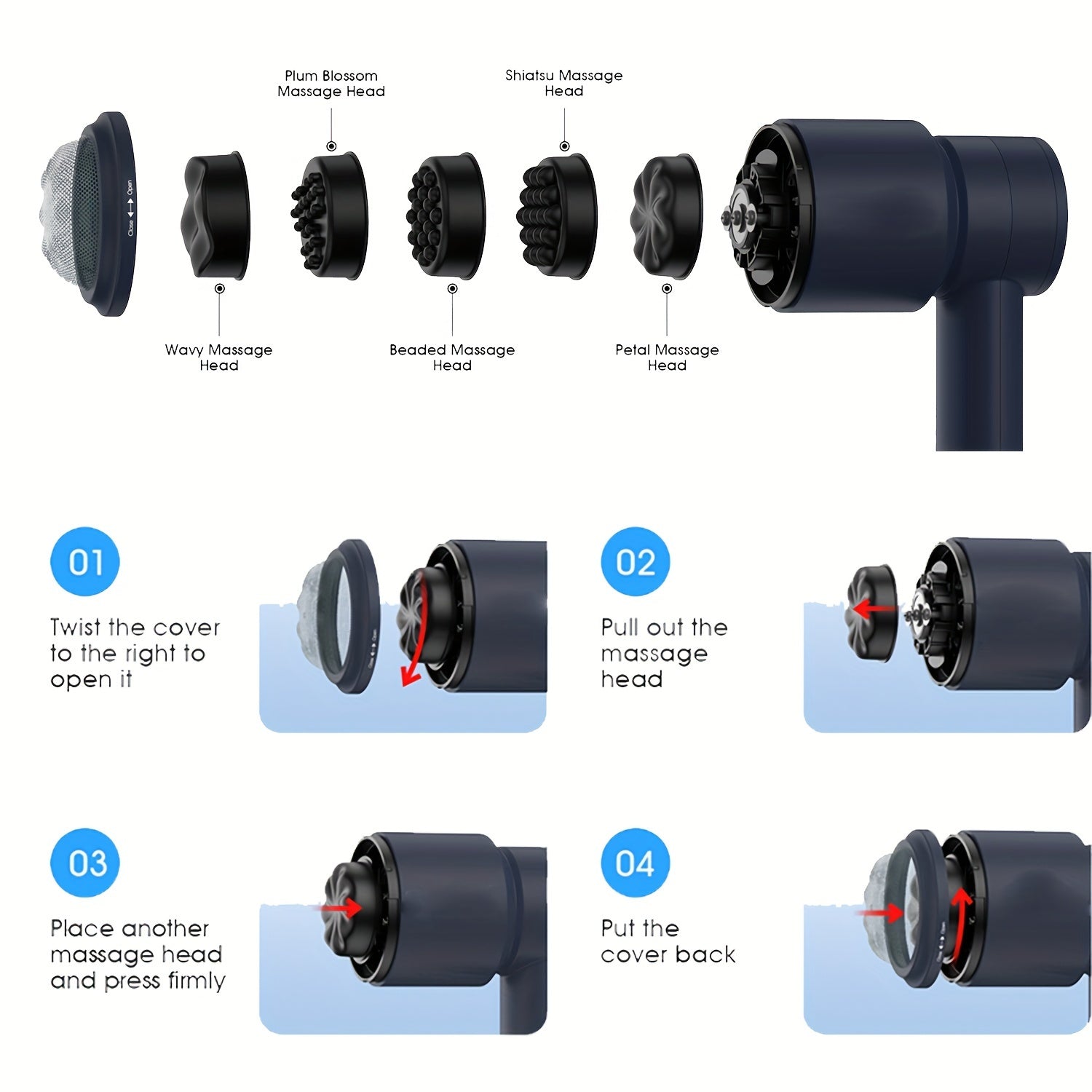 - 5 Replaceable Massage Heads: Customize your massage experience with 5 different heads designed for targeted relief across your arms, thighs, calves, and more.