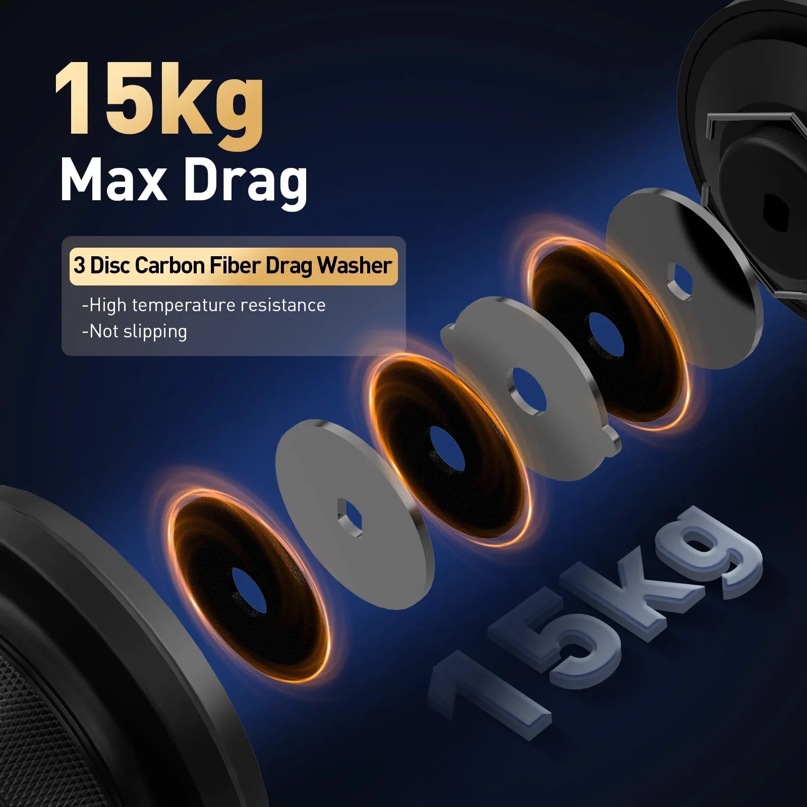 Drag System: 15KG Max Drag, 3-Disc Carbon Fiber Drag Washers