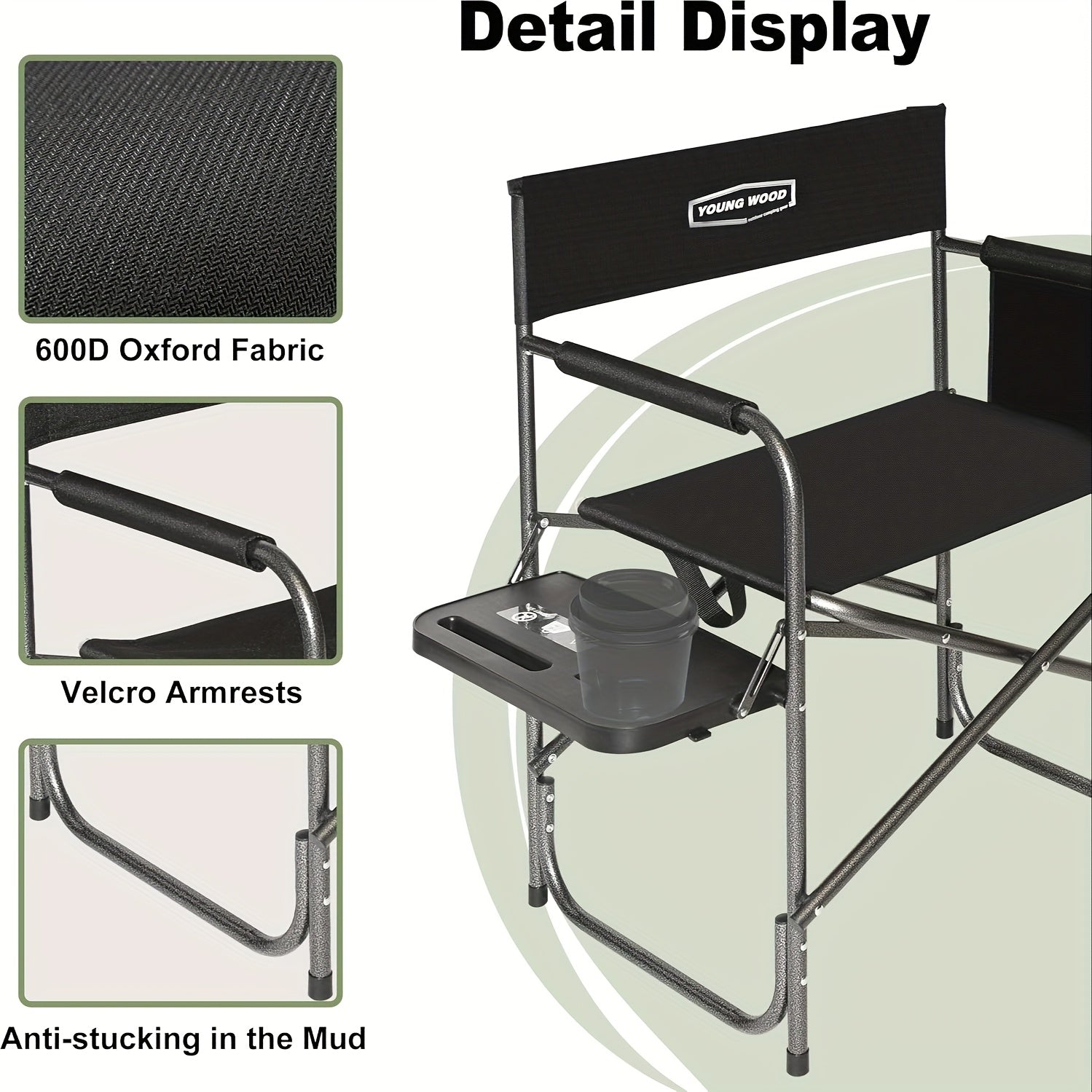 Comfortable Oxford cloth seat with integrated cup holder for convenience